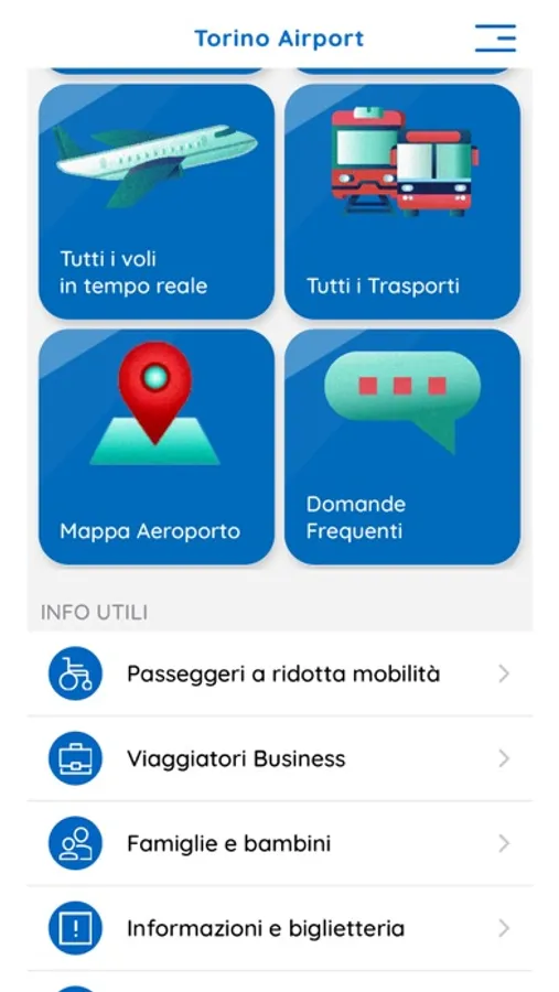 Infine hai a portata di mano tutte le informazioni utili al tuo viaggio e alla tua permanenza in aeroporto, oltre all’elenco dei ristoranti e dei negozi e mappe dedicate ai viaggiatori business, alle famiglie con bambini e ai passeggeri a ridotta mobilità per individuare facilmente i servizi a disposizione di queste categorie di utenti.