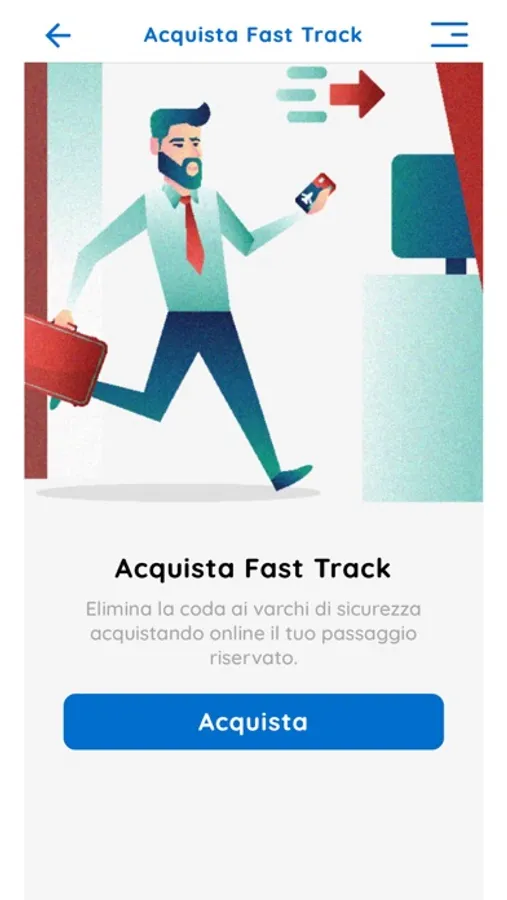 Acquista e visualizza direttamente sul tuo smartphone tutti i servizi: parcheggi, accesso a Fast Track e Vip Lounge e utilizza i servizi tramite PIN o QRCode salvati nella tua area personale.