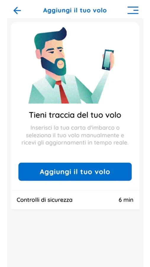 Effettua il login per ricevere aggiornamenti in tempo reale sullo stato del tuo volo e sul tempo necessario per raggiungere il gate di imbarco.