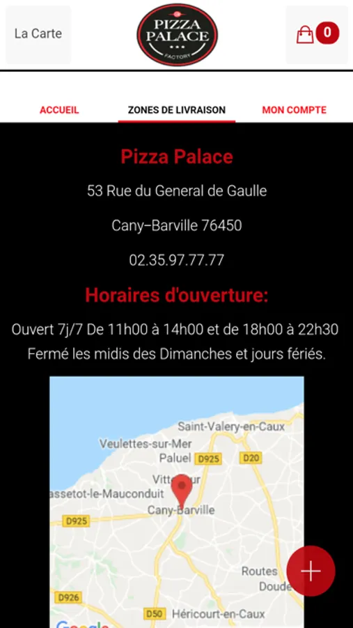 L'application Iphone/Ipad de Pizza Palace Cany-Barville vous permet de commander en ligne ou par téléphone via votre application. Vous pouvez consulter notre carte et choisir vos produits.
