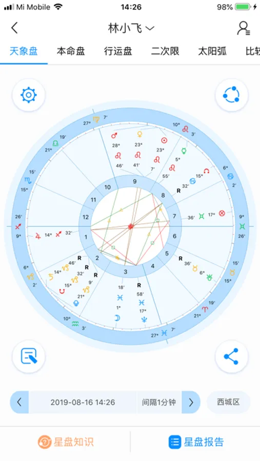 1、星盘软件:提供专业的星盘生成工具供用户使用,并附有详细的星盘解读和专业的星盘报告;