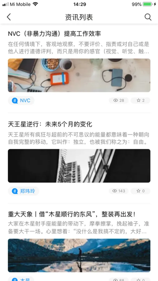 2、占星资讯:每天定期更新2-3篇专业的占星资讯,为占星爱好者提供专业、前沿的占星信息;