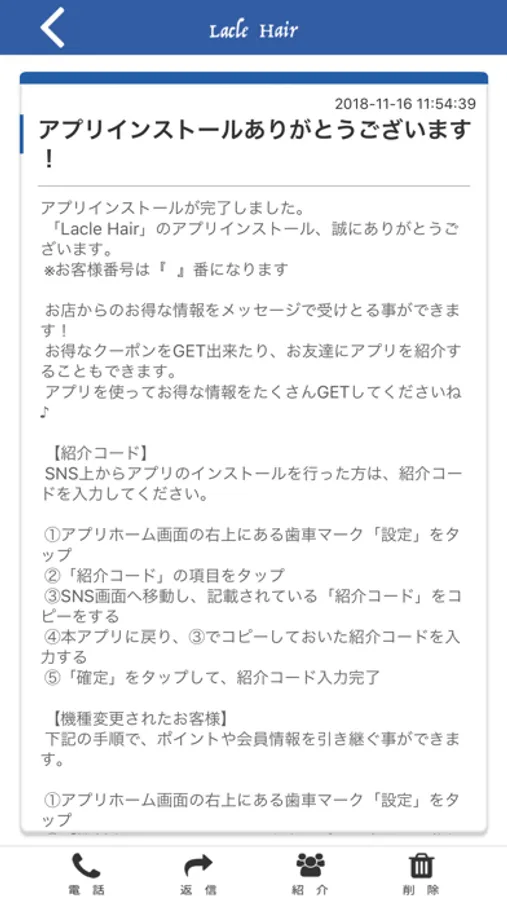 ラクルヘアーのアプリをSNSを通じてお友達に紹介する事ができます。