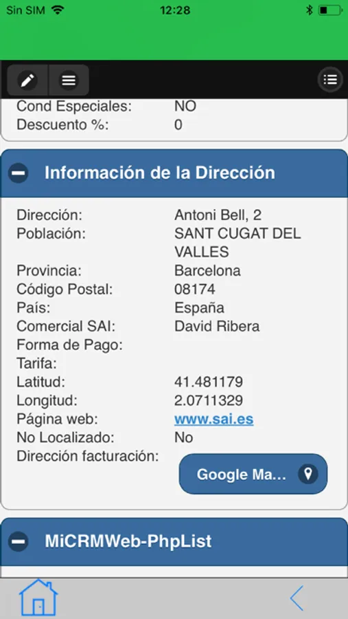 Con CRM World podrá acceder a los datos de MyCRMweb desde un teléfono móvil de una forma fácil y práctica. Calendario, Cuentas, Contactos, Casos y otros módulos de utilidad pueden ser gestionados desde la palma de su mano. La aplicación permite la marcación de los números de teléfono mostrados en pantalla. El botón Google Maps le va a permitir localizar la dirección rápidamente cuando esté de camino hacia sus clientes. La opción de grabación de actividad le permite usar el dictado por voz para realizar informes de visita o apuntar comentarios en la ficha del cliente. En definitiva una aplicación que le va a permitir aumentar la productividad de su equipo comercial si éstos se pasan buena parte del tiempo haciendo visitas a clientes.