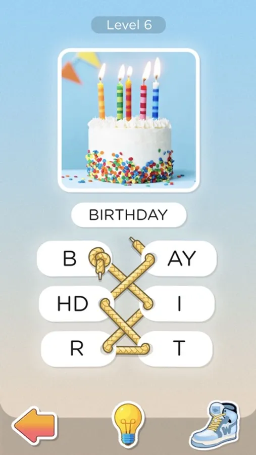 Each level presents you with an image and a set of jumbled letters. Your task is to find words associated with the image and “lace” the words together.