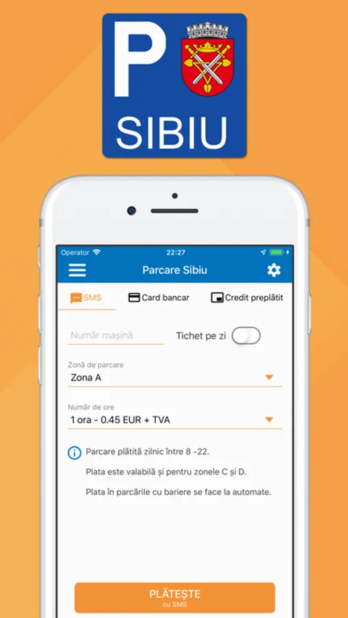 Parcare Sibiu este o aplicație oficială a Municipiului Sibiu.