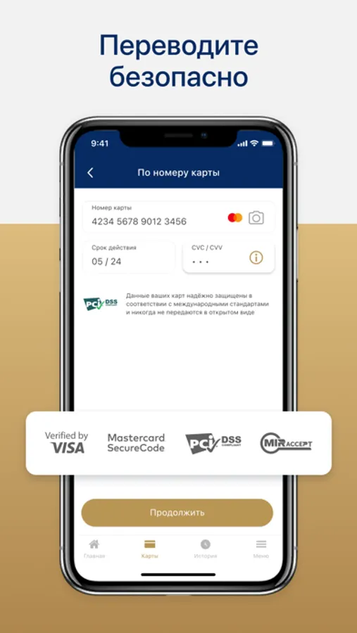 Все переводы надежно защищены по технологии 3-D Secure для дополнительной безопасности транзакций. Подключить технологию можно в интернет банкинге или банке, выпустившем вашу карту.
