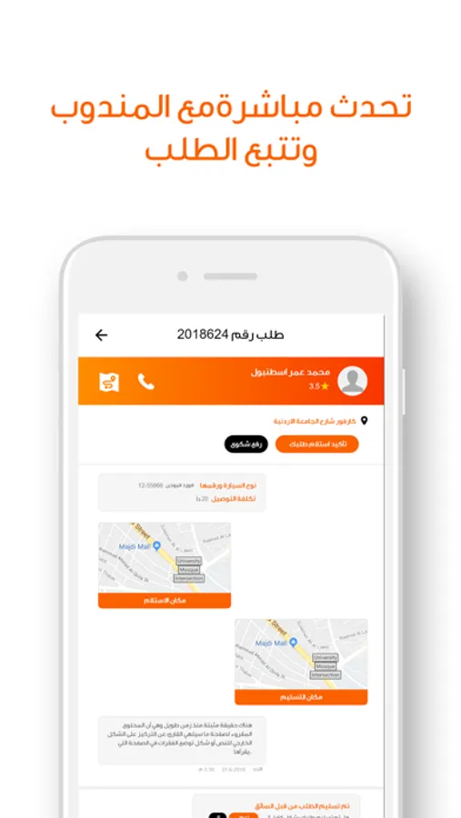 • تحديد مكان إستلام الطلب و من ثم مكان تسليم الطلب .