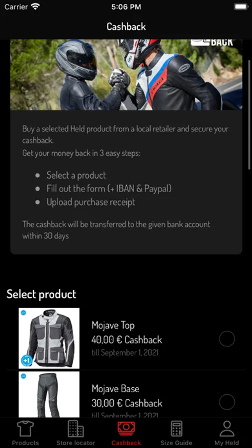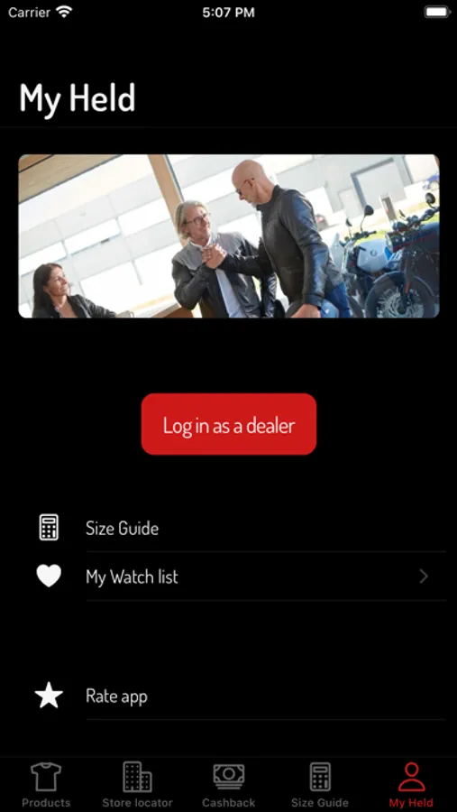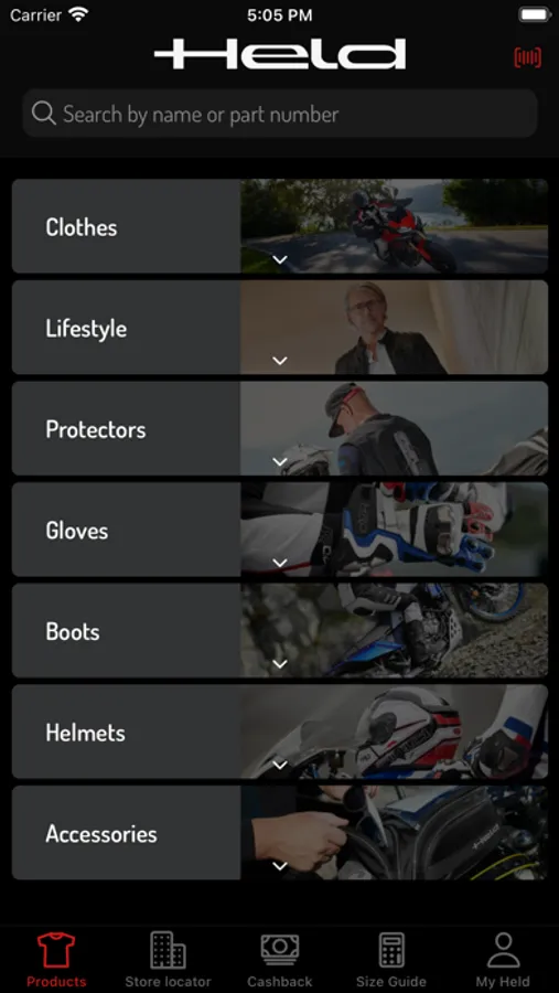 The Held Biker Fashion APP. All your favorite Held products in your pocket. Find your nearest Held retailer even faster with the Retailer Locator. Use the barcode scanner to easily find out more about your Held product via the EAN code. For example, all colours, available sizes and the materials used.