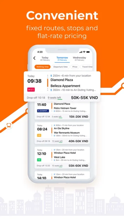 Express routes. We allow only app-booking, so no needless stops on your ride. You will be on time!