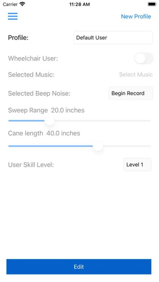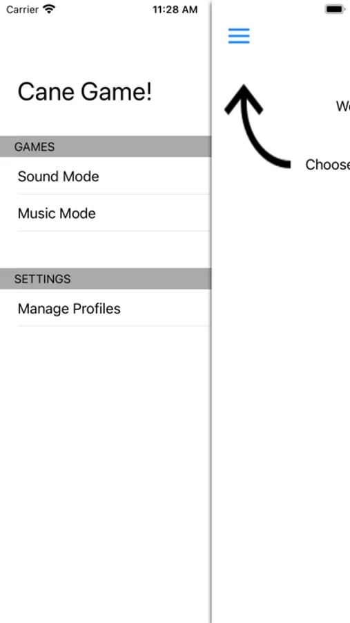 The app interoperates with a bluetooth sensor module that attaches to a mobility cane and sensor the cane's movements. We have developed a custom attachment mechanism that allows the sensor to be quickly attached and detached from standard mobility canes. The movements of the cane are streamed wirelessly to the app, and the app responds when swept in a full arc. Game modes include counting, sound effects, and playing music from a customizable playlist. Individual student profiles are supported to allow customization to multiple users.