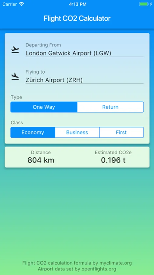 * Offline flight CO2 calculator for your flights (one-way, return)