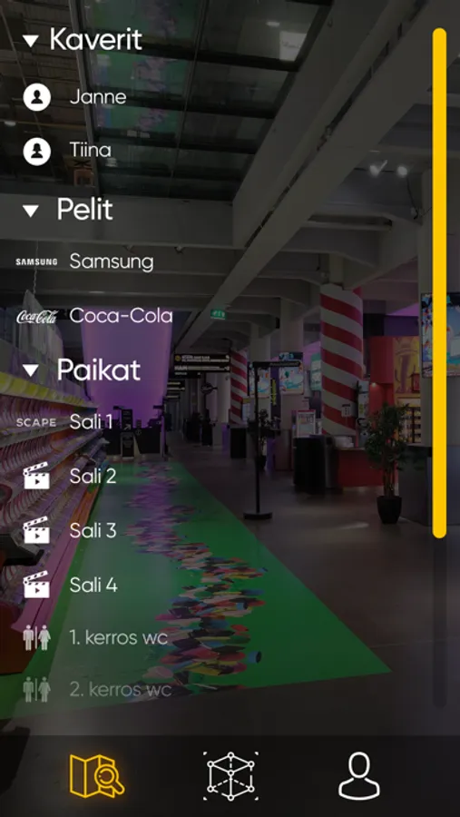 Leffapeli Lens on lisätyn todellisuuden (augmented reality, AR) appi, joka toimii toistaiseksi Tennispalatsissa. Voit pelata AR-pelejä ja voittaa niistä oikeita palkintoja, löytää sisätilanavigoinnilla salit, wc:t, kaverit jne.