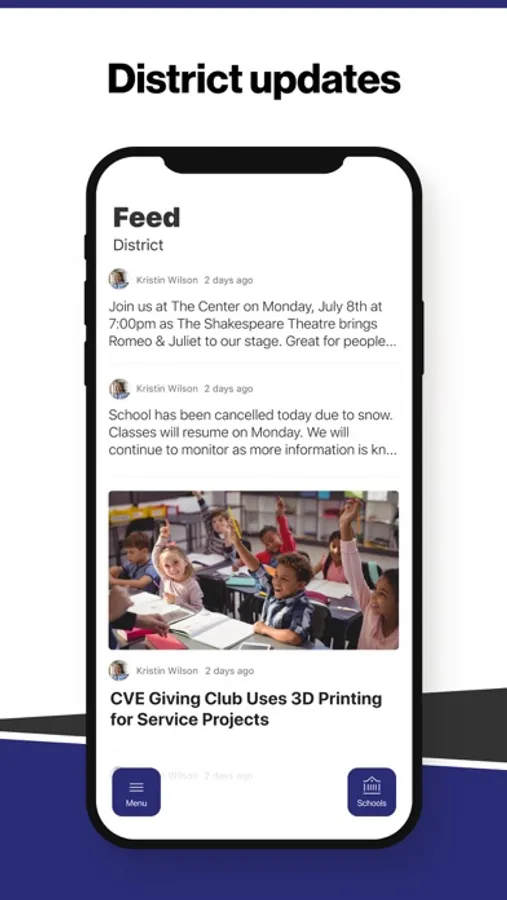 allows users direct access to the most recent news, announcements and event calendars. Customize the app to display information relevant to a specific campus and to receive important notifications from the district. Users may also access the directory of district faculty and staff, view dining menus, find the location of district events, contact campuses and departments, follow athletic scores and updates, and much more.