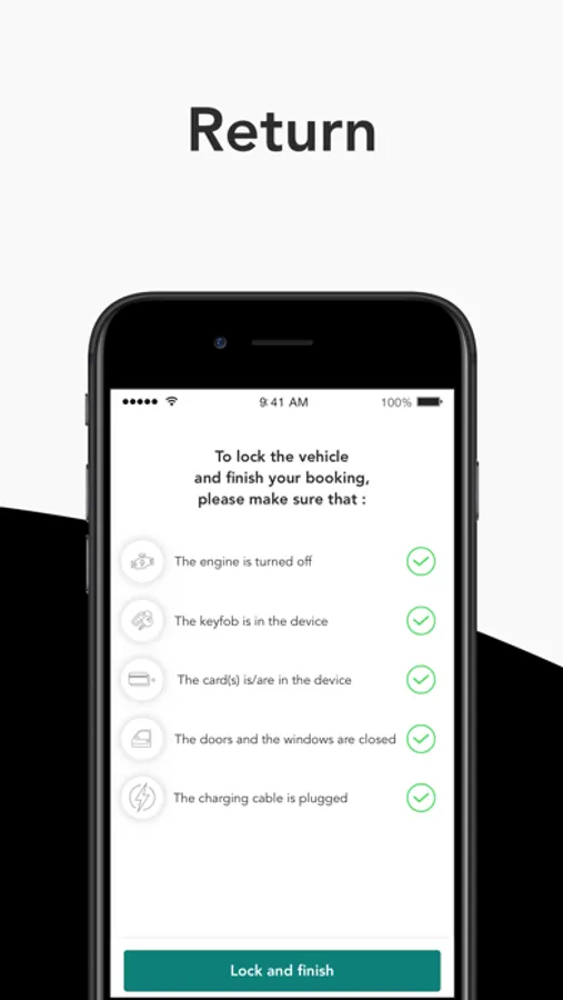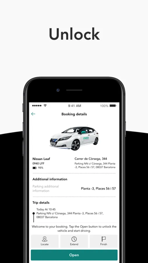 Through our modern app you can find and reserve a 100% electric vehicle, open it, close it and end the reservation without the use of any type of keys, only with your mobile phone, what do you think?