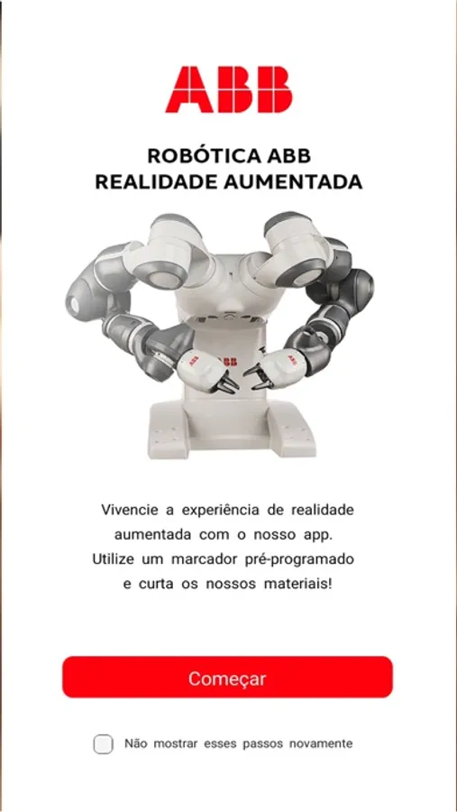 Bem-vindo ao app de Realidade Aumentada Robótica ABB RA.