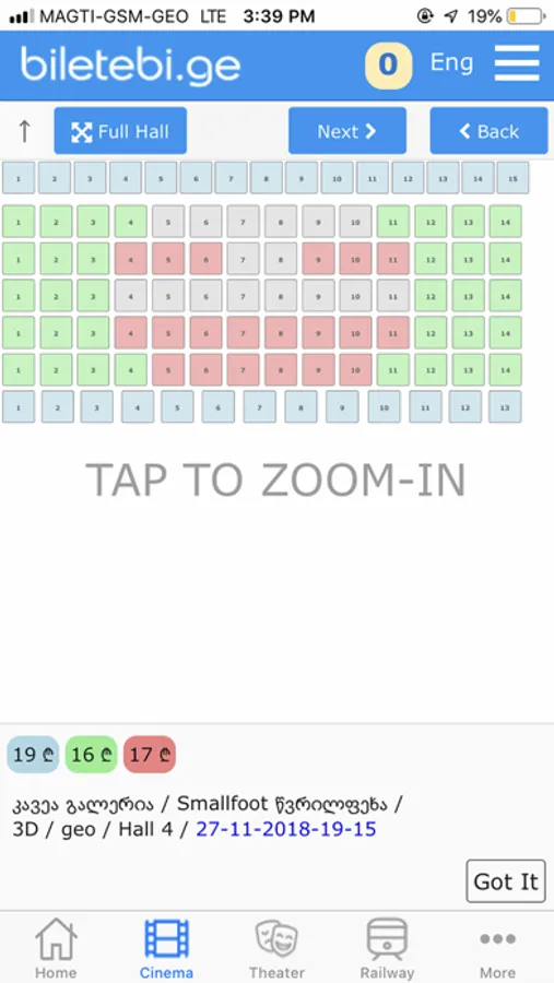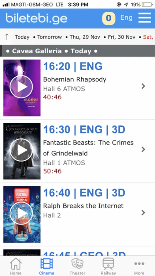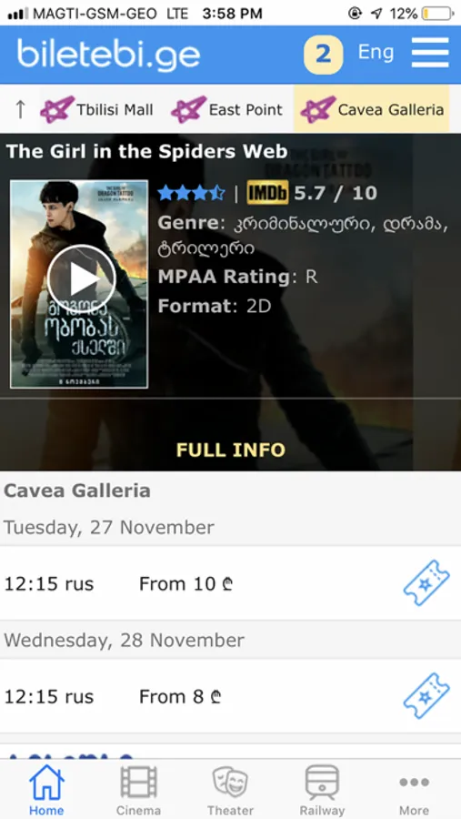 Biletebi.Ge is a national ticketing operator in Georgia and gives you access to all kinds of entertainment, events, theaters, cinemas, railway, transport and museums and makes it easy to buy and get in using your mobile phone e-ticket instead of printed one.