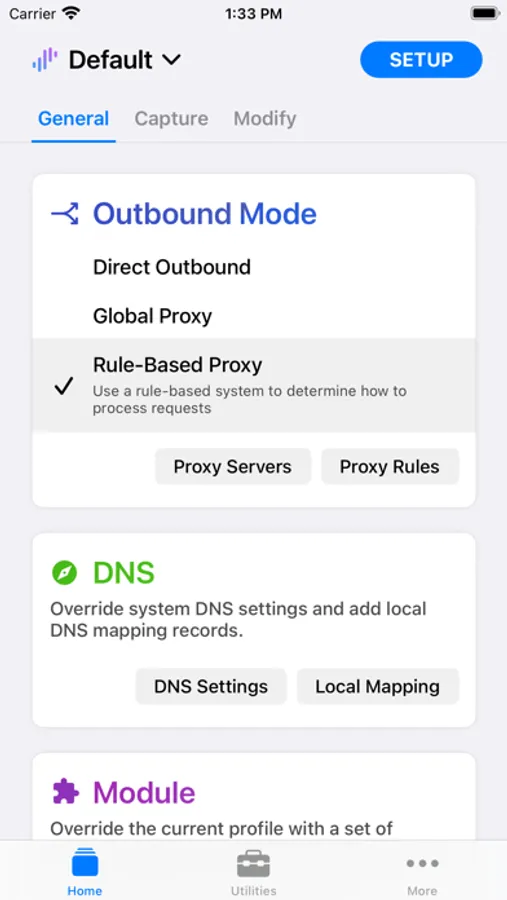 · Local DNS Map (equivalent to /etc/hosts). You can use this function to switch the production/development environment for your app without changing any code.
