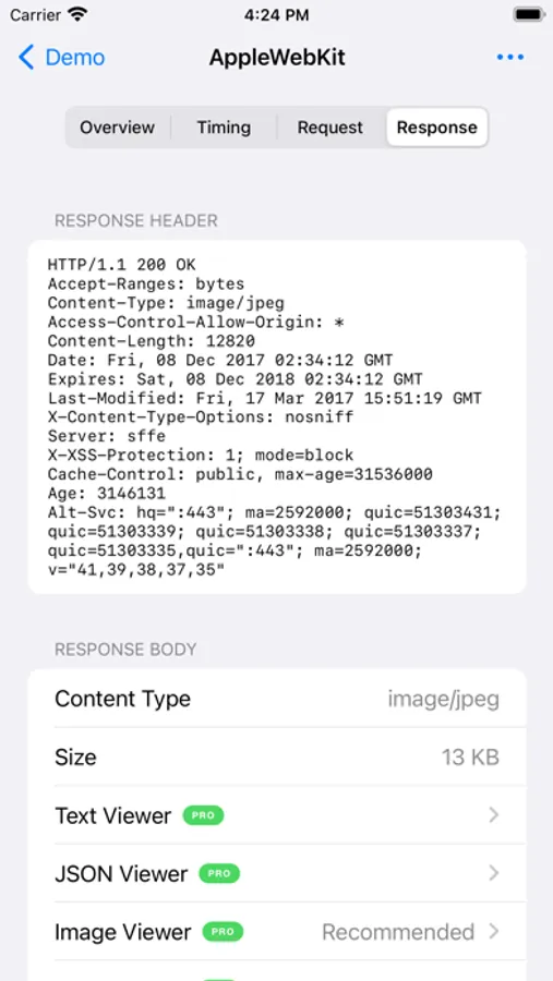 · JSON, text, image and video viewer for the captured body.
