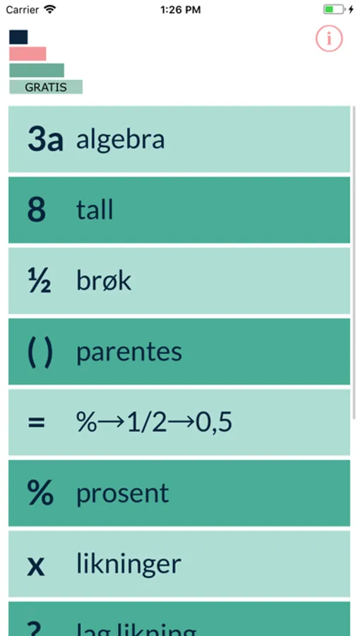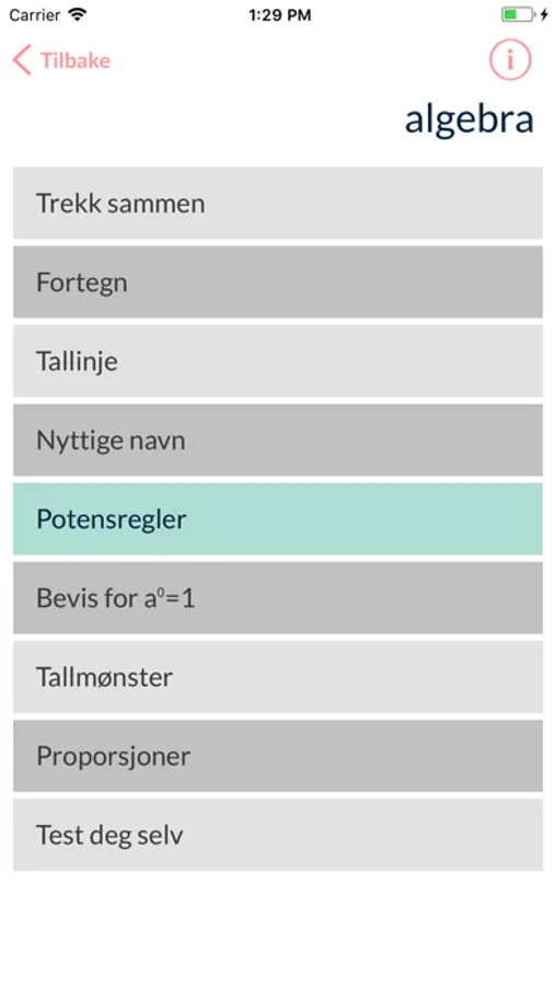 Du lærer de grunnleggende reglene trinnvis, med økende vanskelighetsgrad på oppgavene. Mattetrinn ønsker å gi deg nøkkelen til mønsteret i matematikk. Appen kan brukes som støtte på ungdomsskolen, eller til å repetere regler når du går på videregående.