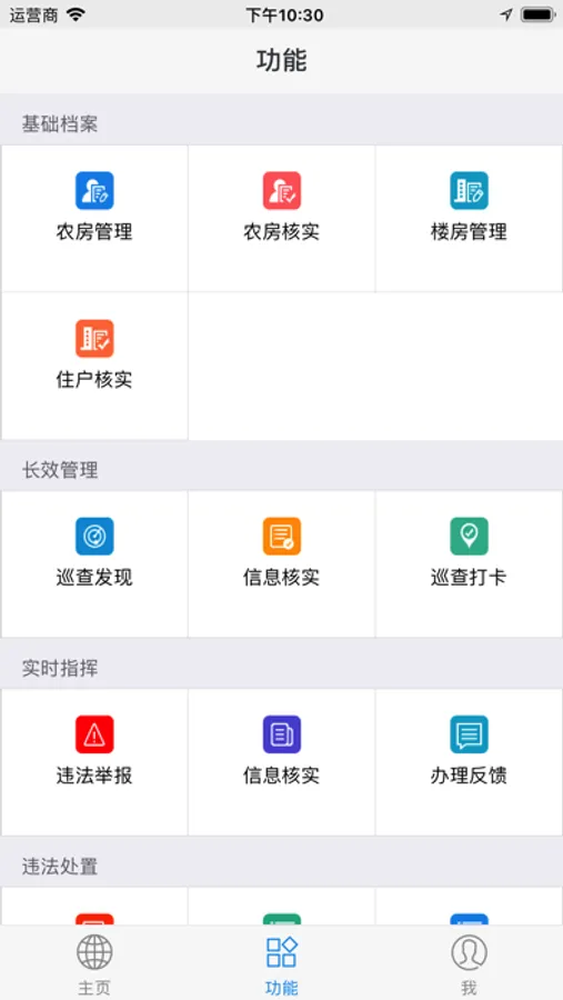 防违控违App是防违控违综合管理系统的移动巡查端应用,村社区网格员、乡镇网格员和区级网格员能够通过该App进行移动巡查、定点打卡、轨迹上报、信息核实等日常业务操作。