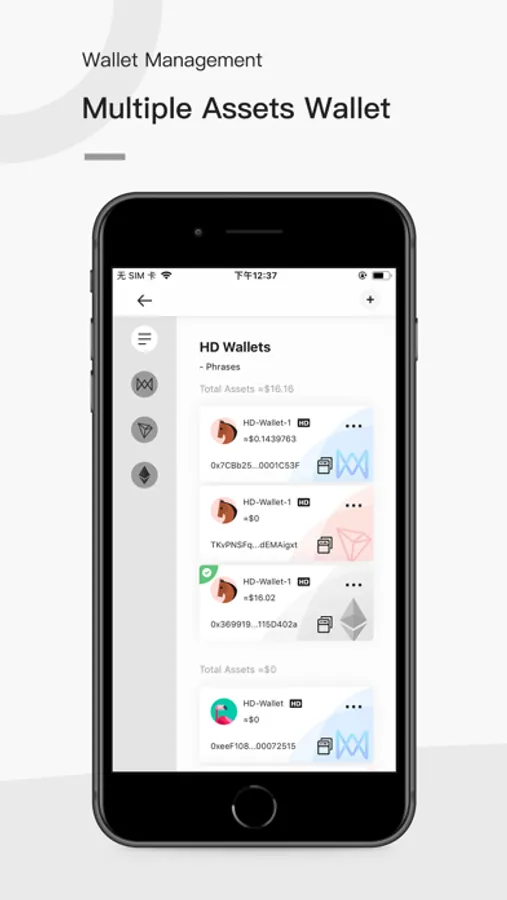 Users can own Ethereum (ETH), ERC20, Tron (TRX), Bitcoin (BTC) and QuarkChain(QKC) accounts at the same time by creating only one HD wallet address. EOS, Litecoin (LTC), DASH, Ripple (XRP) and more to come!