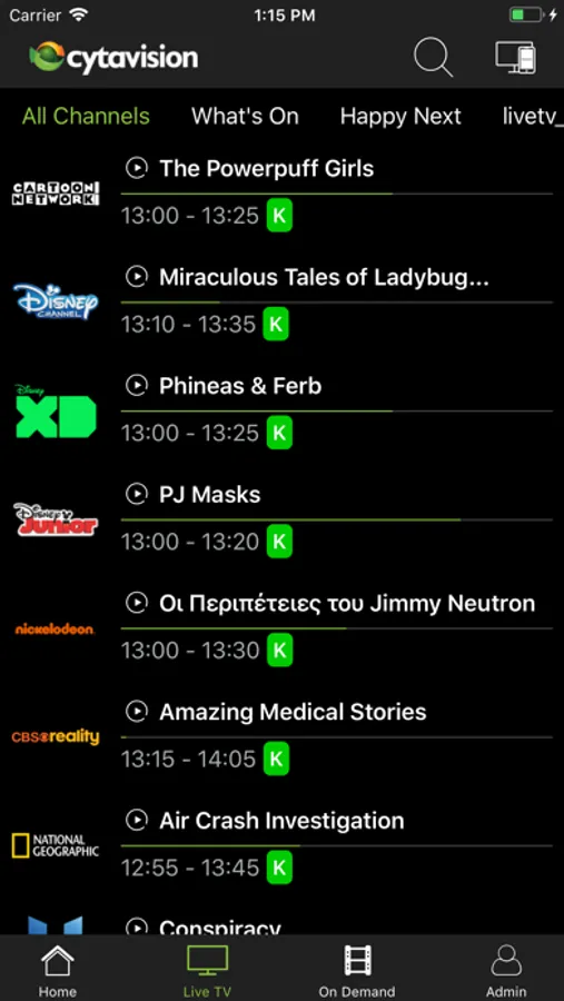 - Watch in Cytavision Replay TV selected past programs of various channels.