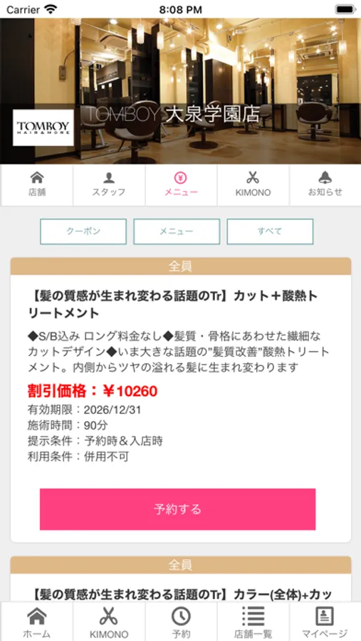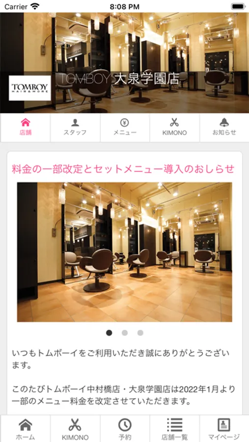 これまでの来店履歴や予約内容、お店からのお知らせをチェック。