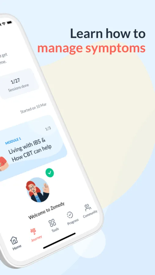 Zemedy offers a 6-week digital Cognitive Behavioral Therapy (CBT) for IBS: Besides being an IBS tracker, Zemedy offers: