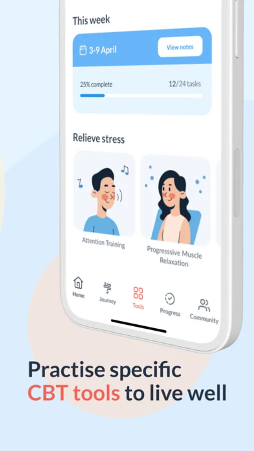 You will also have access to tools that help you practice the skills you learn in the CBT program and more.