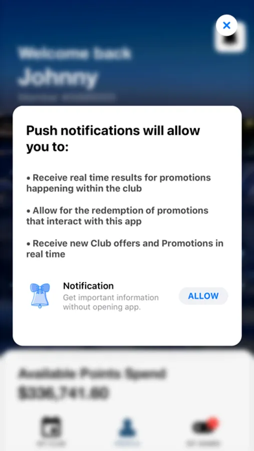 * Be part of exclusive interactive Club Promotions, sent to your phone via push notification for redemption at the venue counter