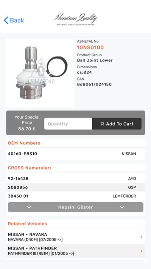 ASMETAL Uygulaması üzerinden, ASMETAL ürünlerine erişebilir, ürünler üzerinde araca göre, oem numarasına göre ve ASMETAL numarasına göre arama yapabilirsiniz.