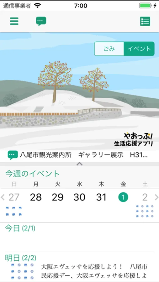 「やおっぷ」は、お知らせやイベント・観光情報、防災やごみに関する情報、こどもの予防接種・健診のお知らせなど、生活に役立つ情報を提供するアプリです。