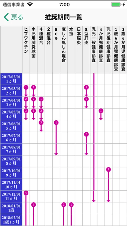 こどもの出生予定日や出生日から、予定される予防接種・健診のスケジュールを確認でき、また受診前に通知を受けることができます。