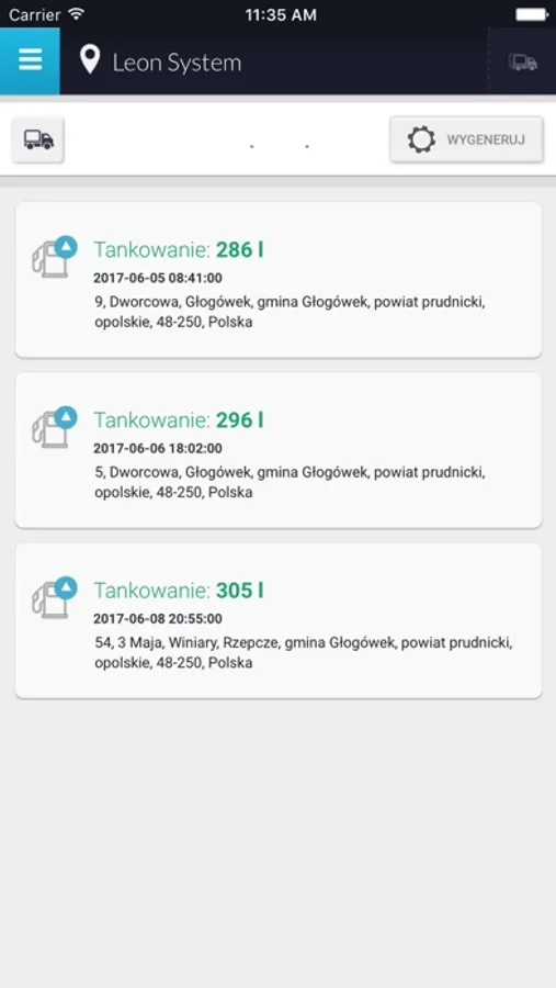 - przesyłane dane z pojazdu występują w obu projektach LeonSystem,