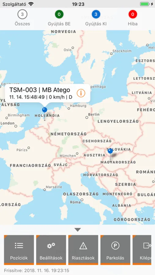 Ez az alkalmazás lehetővé teszi, hogy kövesse saját autójának vagy céges járműflottájának mozgását. Térképen láthatja a járművek pillanatnyi pozícióját és állapotát. Visszanézheti a korábban megtett útvonalakat, ahol látja az adott napon megtett teljes távolságot, valamint a vezetési időt is. Részletes, cím szerint úti célokra bontott napi útnyilvántartást és havi kilométer elszámolást készíthet. Különféle riasztásokat állíthat be, melyek értesítésként (push notification) ingyenesen érkeznek meg telefonjára.