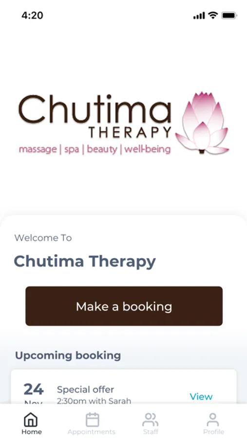 The Chutima Therapy app makes booking your appointments and managing your loyalty points even easier. You're just a few taps away from feeling good and looking great!