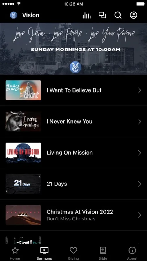 This app is packed with powerful content and resources to help you grow in your faith and stay connected at Vision. With this app you can: