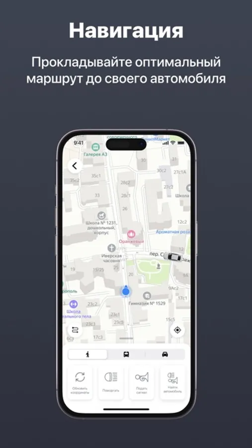 Если Вы забыли, где припарковали свой автомобиль, приложение найдет его и проложит маршрут.