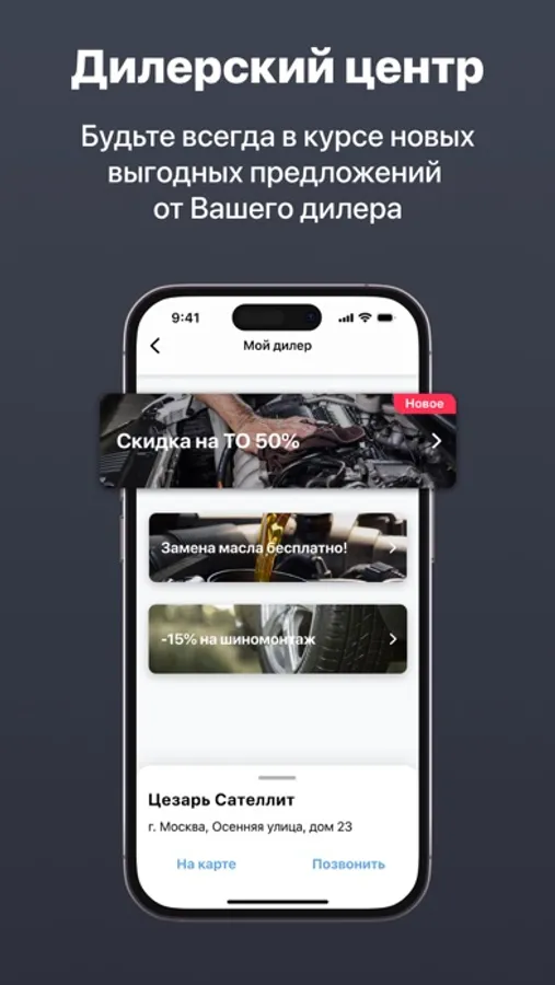 В приложение для Вас попадают индивидуальные выгодные предложения и акции от «Цезарь Сателлит», вашего дилера и других партнеров.