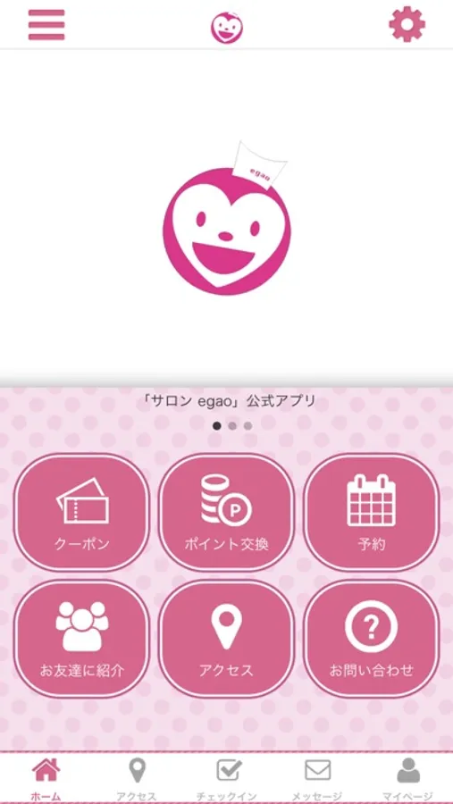 このアプリでは、サロン egaoの最新情報の受け取りや便利な機能を使う事ができます。