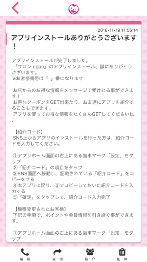 サロン egaoのアプリをSNSを通じてお友達に紹介する事ができます。