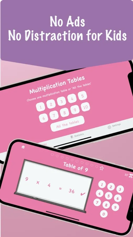 You can choose one table from 1 to 10 to train your memory for each time table, or you can choose "All the tables" to test your level.
