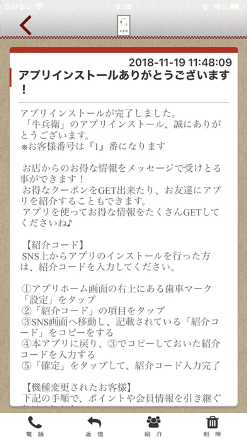 牛兵衛のアプリをSNSを通じてお友達に紹介する事ができます。