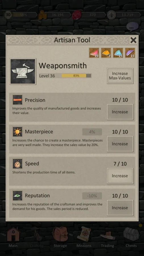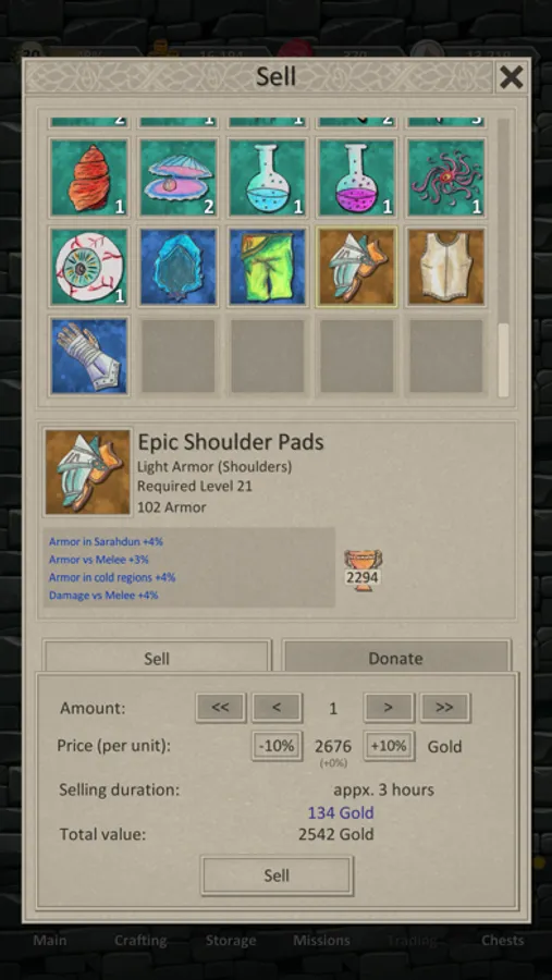 Trade your goods with fellow players in guild barter, buy in the guild shop or sell your goods on the marketplace.