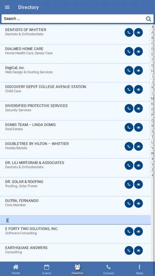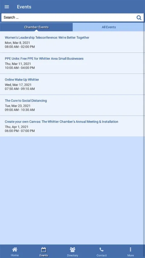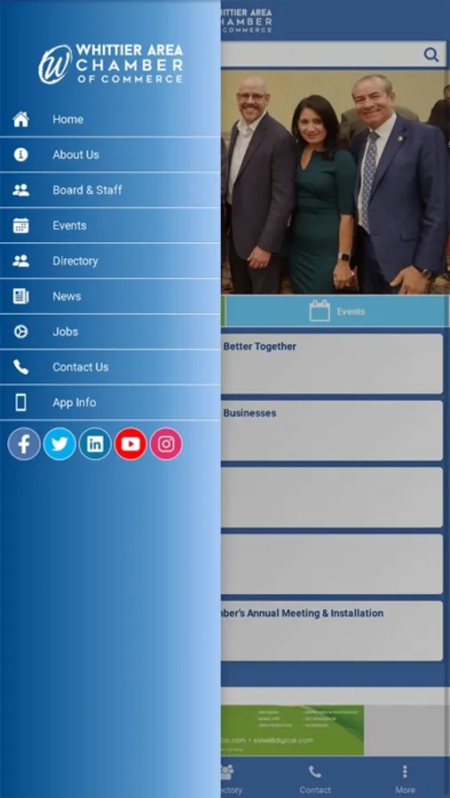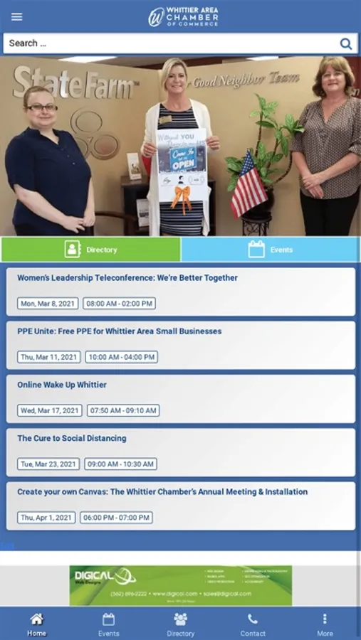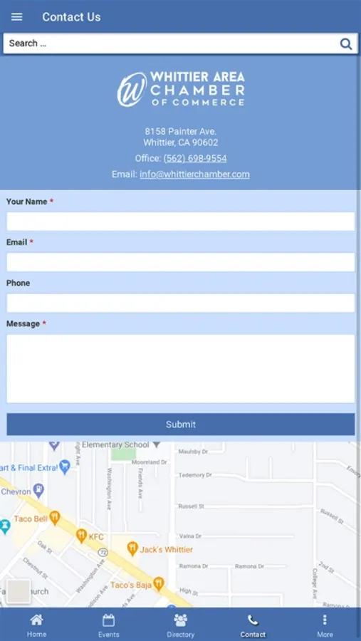 The Whittier Chamber App showcases our members, chamber events, and chamber news. You can easily search our members and call them directory from our app. You can "copy" the member's address to your clipboard to be used on your preferred mapping app like Google Maps or Waze.