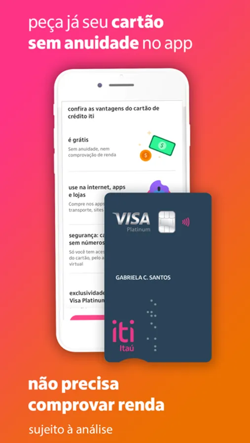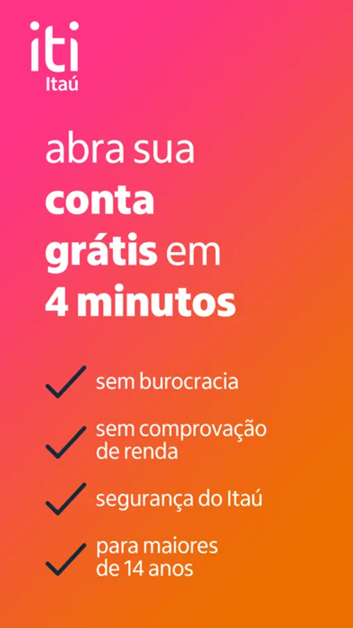 Venha fazer parte do iti, seu banco digital com cartão de crédito sem anuidade e rendimento nas metas.