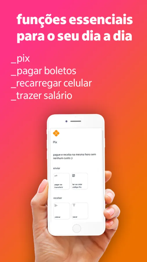 ◉ Pix: você pode realizar transferências 24 horas sem taxas e receber pagamentos de qualquer banco por Pix.