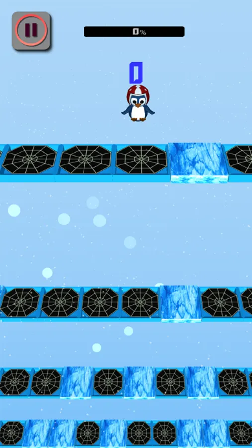 Exciting adventure of the bouncing penguin through the ice blocks.