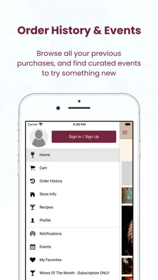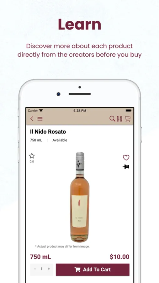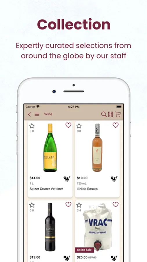 With the App you can browse for the wines & spirits available in the store, and also order a delivery or pickup.